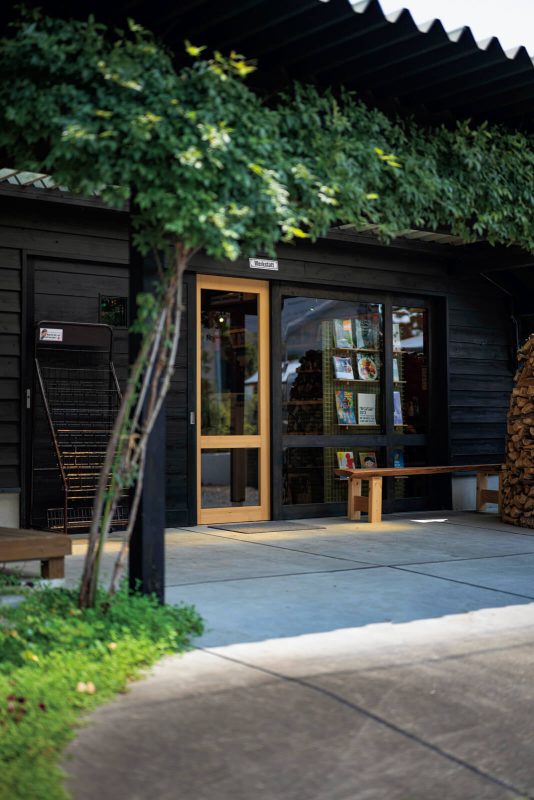 店の奥に広がる住宅の庭は草木が育ち、公私の緩衝帯として機能しながら、店内にさわやかな心地よさをもたらしています。完成してみると、車庫だったのに、書店であることが当たり前のような空間に思えるから不思議です。